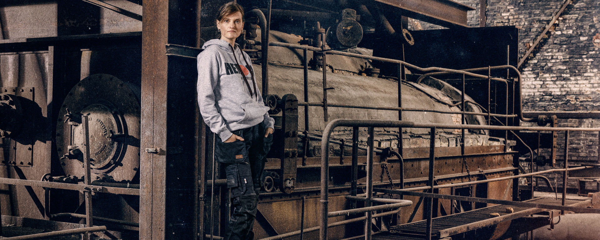 Linx vinnubuxur frá Herock úr galla stretch efni með smíðavösum sem hægt er að taka af